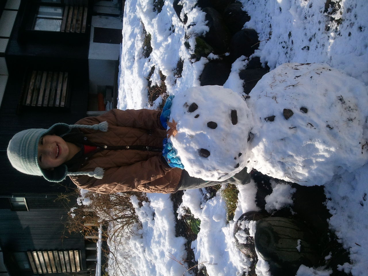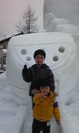 地元を走る北越急行の特急はくたかの雪像をバックにパチリ。