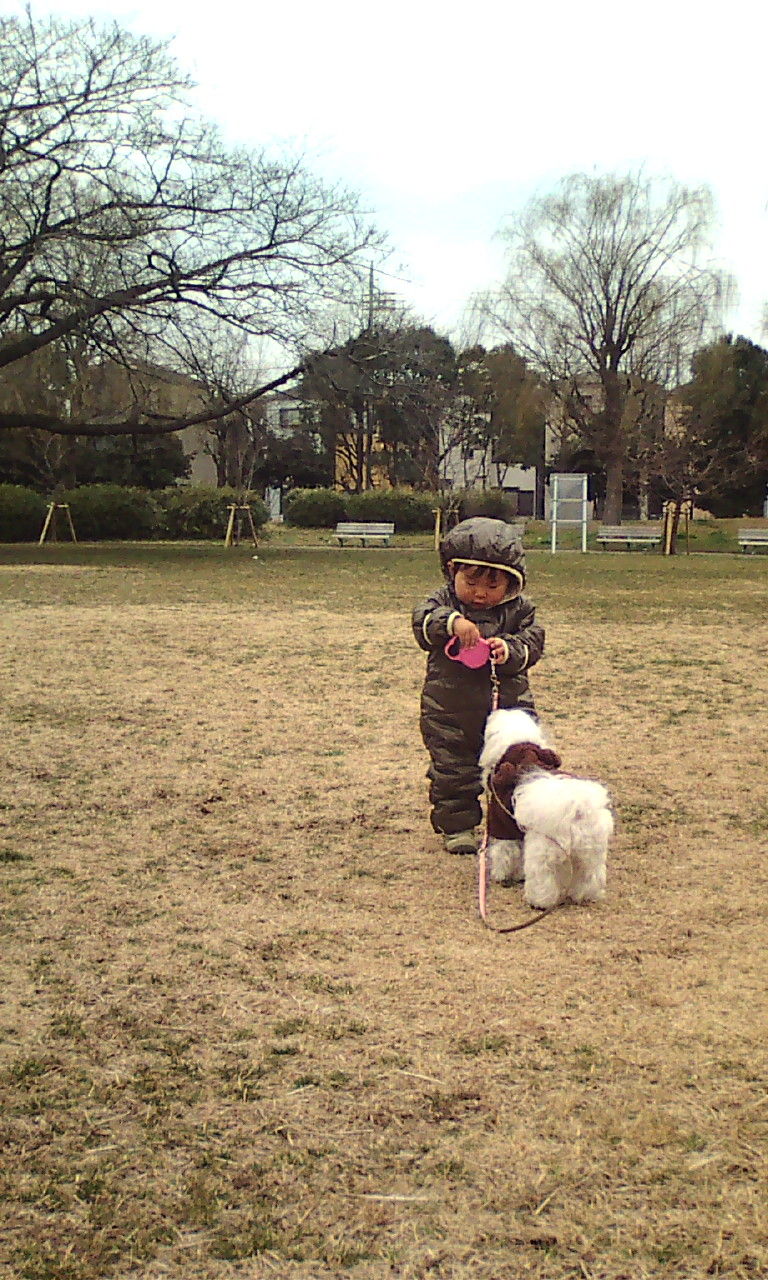 兄のところの犬にも御対面。最初はビビって泣いたけどすぐに仲良くなったよ。