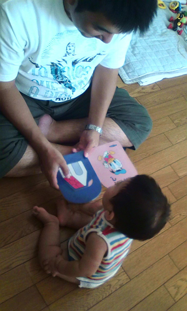 ●言葉はちょこちょこ増えてきました。「じぃじ」「ばぁば」ときどき私のことを「かぁか」と呼んでくれます。ときどき夫のことを「とぉと」と呼びます。「にゃんにゃん」「わんわん」「ぽっぽ(鳩)」「ポッポー(汽車)」「はっぱ(葉)」「ないない」「くるくる(回るもの)」「ちょんちょん(ふりかけ)」「ちんちん」「あわわわわ(泡)」「ジャー(流れる音)」「ちゃちゃ(お茶)」「まんま(ご飯)」「ガーガー(あひる)」「くっく(靴)」「ブーブー(車)」「ちょちょ(ちょうちょ)」「ぐっく(抱っこ)」「ねんね」