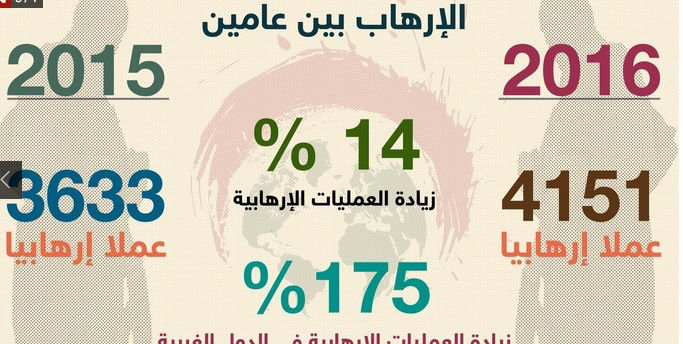 これによると、2016年に全世界で発生したテロは4151件。2015年の3633件から、14%増加しています。