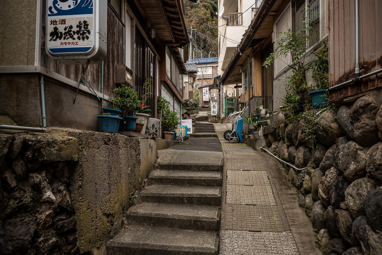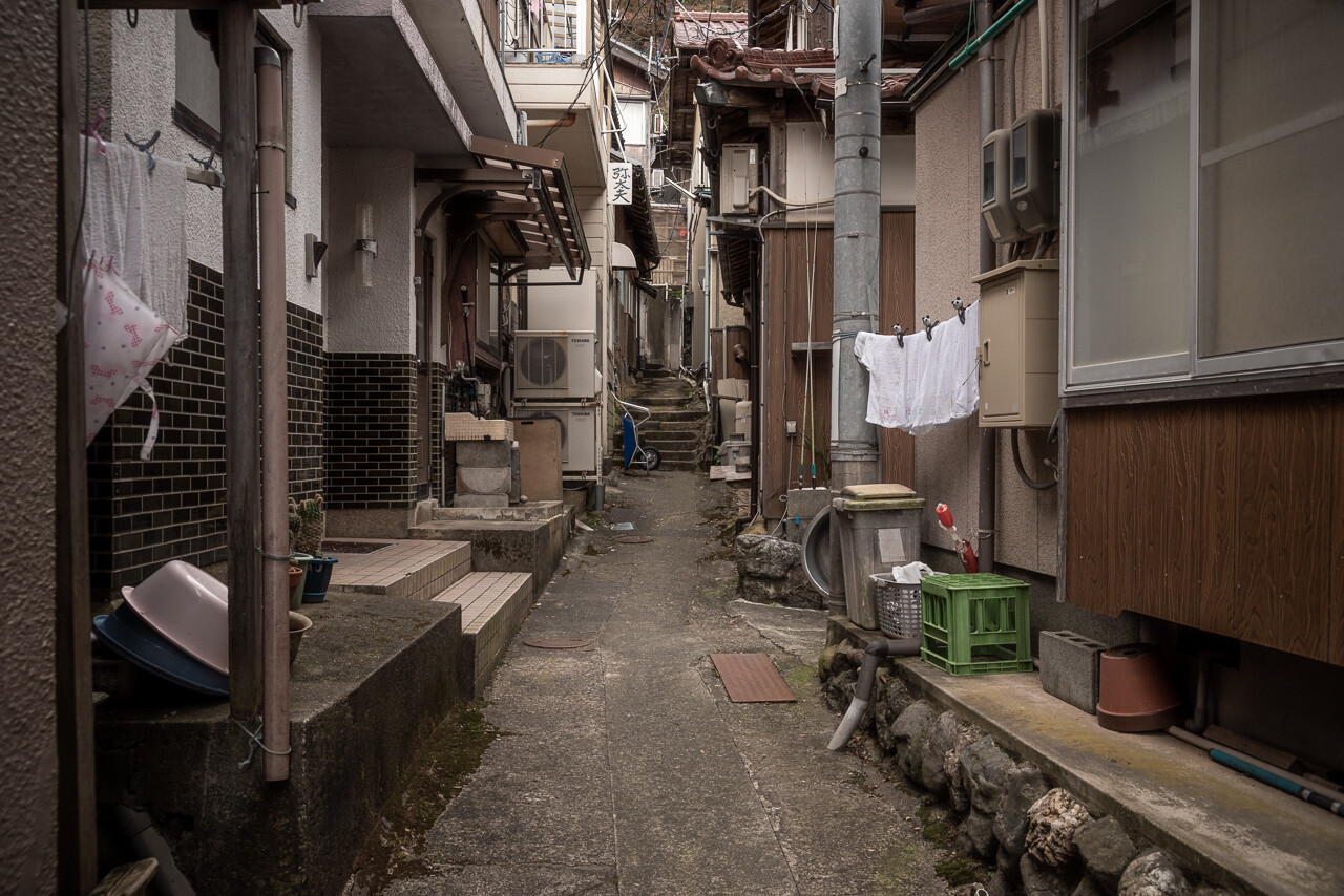 やどがい。 2019年11月10日 ( ゚毒゚)< 建ち並ぶ建物の ほとんどが 旅館業を営む という海沿い の道 最奥に位置する港町集落。 ( ゚毒゚)< 地形的には なかなかの隔離具合 にも 関わらず 色褪せた建物の 隙間から営み というか商いの気配 にじむ。 タグ :民宿街写真