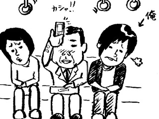 昨日電車で俺の隣に座ってた95%多分ヨッパのオッサン(以下:メイビーヨッパ)が、結構混んでるっていうのに急に携帯取り出して頭上高く掲げた。