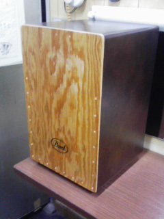 この箱みたいな楽器の上に座って手で叩いて音を出す打楽器。