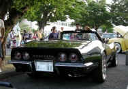 前田外科病院前のアストン マーチン DB6とポンティアック GTOとローバー 2000