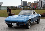 横浜マリンタワーを背景に、赤レンガ倉庫のシボレー コルベット スティングレイ