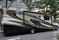 ABC-MARTを背景に、新宿通りを走るトリンプの試着バス