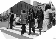 黒沢ビルを背景に、銀座を行き交う人々とコロナ マーク II