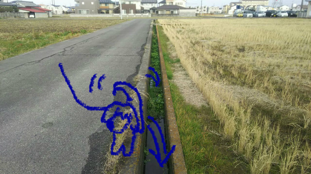 だって いち君が 見事に溝の中に落ちてて そこで仁王立ち!! なんですもの・・・