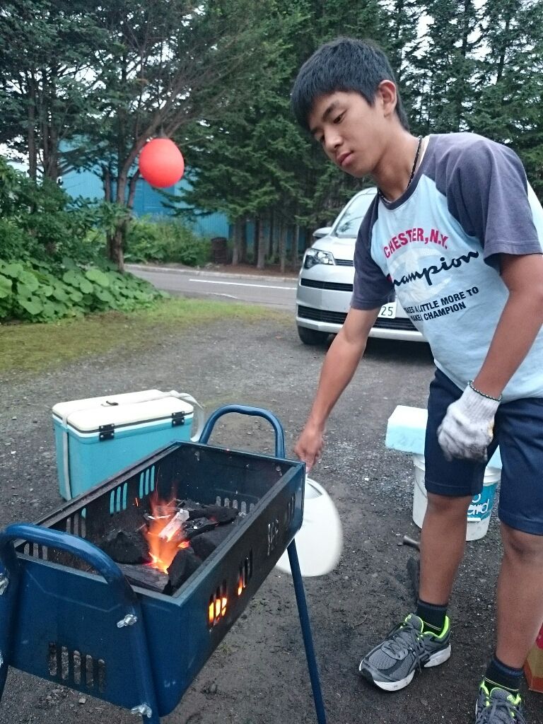 帰宅後は同級生と焼床なんで、息子の炭おこしテストを実施。笑