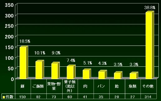 ¤Ê¤É¤ËÈÂÁ÷¤µ¤ì¤¿»öÎã¤Ï¡¢Çİ®¤Ç¤¤¿·×£¸£°£³Îã¤Î¤¦¤Á¡¢¥â¥Á¤Î£±£¶£¸Î㤬ºÇ¿¤Ç¡¢
