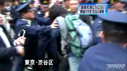 「麻生首相の自宅を見に行こう」とインターネット上で呼びかけ、東京・渋谷区の繁華街で、無届けでデモ行進を行っていたグループの男3人が、警察官に暴力を振るうなどして現行犯逮捕された。逮捕された氏名不詳の男3人は26日午後3時50分ごろ、渋谷区宇田川町の路上で、無届けでデモを行ったり、警察官に暴力を振るったとして、