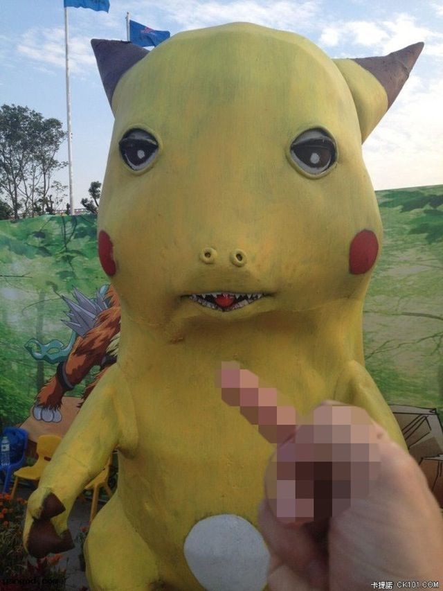 黄ばんだ「ペットントン」かと思いました(苦笑)今月初旬に『第5回 ?州国際アニメ祭り』というイベントが中国で開催されました。 登場したのは、コスプレにアニメに『ポケモン』キャラたちの立像に...。 大のオトナですら一生涯、ココロに傷を負いそうなホドおぞましいピカチュウです。