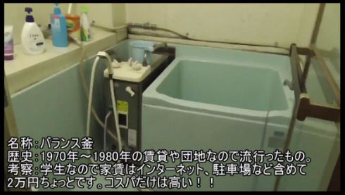 1970年代前後に普及した風呂釜「バランス釜」をご存じでしょうか? 1990年代以降に建てられた住宅ではあまり使われなくなったお風呂ですが、これを初めて見たという平成生まれの投稿者がニコニコ動画に紹介動画を投稿して話題になっています。平成8年生まれで現在大学1年生の投稿者は、下宿先の部屋で初めてこのバランス釜に出会ったそう。浴槽の横にドンっと給湯器が置かれているのが特徴で、運転ダイヤルを押し回しながら着火レバーをガチャガチャと回して点火させると、 お湯を出したり追い焚きができるようになります。ボタンを押せば自動でお湯が溜まるのが当たり前だった投稿者にとって、この方式は驚きの体験だったとのこと。