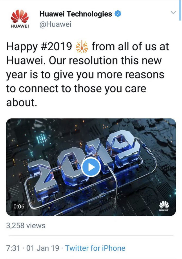 ファーウェイ、新年のあいさつツイートをiPhoneから発信する痛恨のミス → 即削除