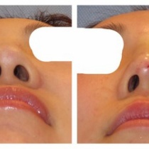 鼻の糸希望で来られた方ですが、お聞きすると何年も隆鼻目的で鼻筋にヒアルロン酸を続けていたそうで、眉間~鼻筋が不自然に太くなっていました。糸施術前にヒアルロにダーゼで入っているヒアルロン酸を溶かしてから糸の処置をすることをご提案し、ヒアルロニダーゼ後にまた ...