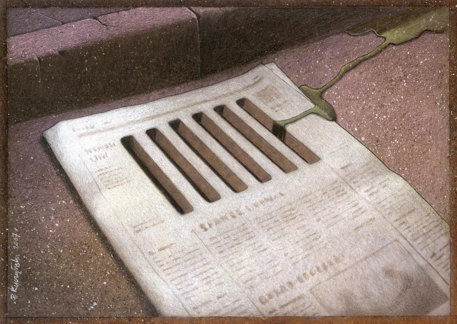正直これらの絵は古くさい左翼的な反消費社会イデオロギーにしか見えない。極限まで美しく描いた新聞の一コママンガって感じ。