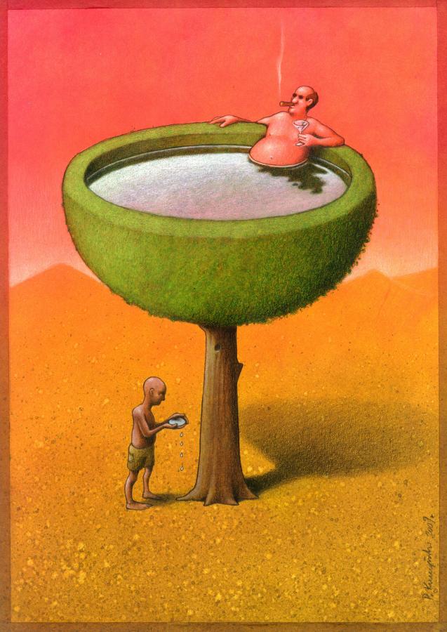 現代でも風刺画として成立する。水と食料と金の動きは殆ど変わっていない。