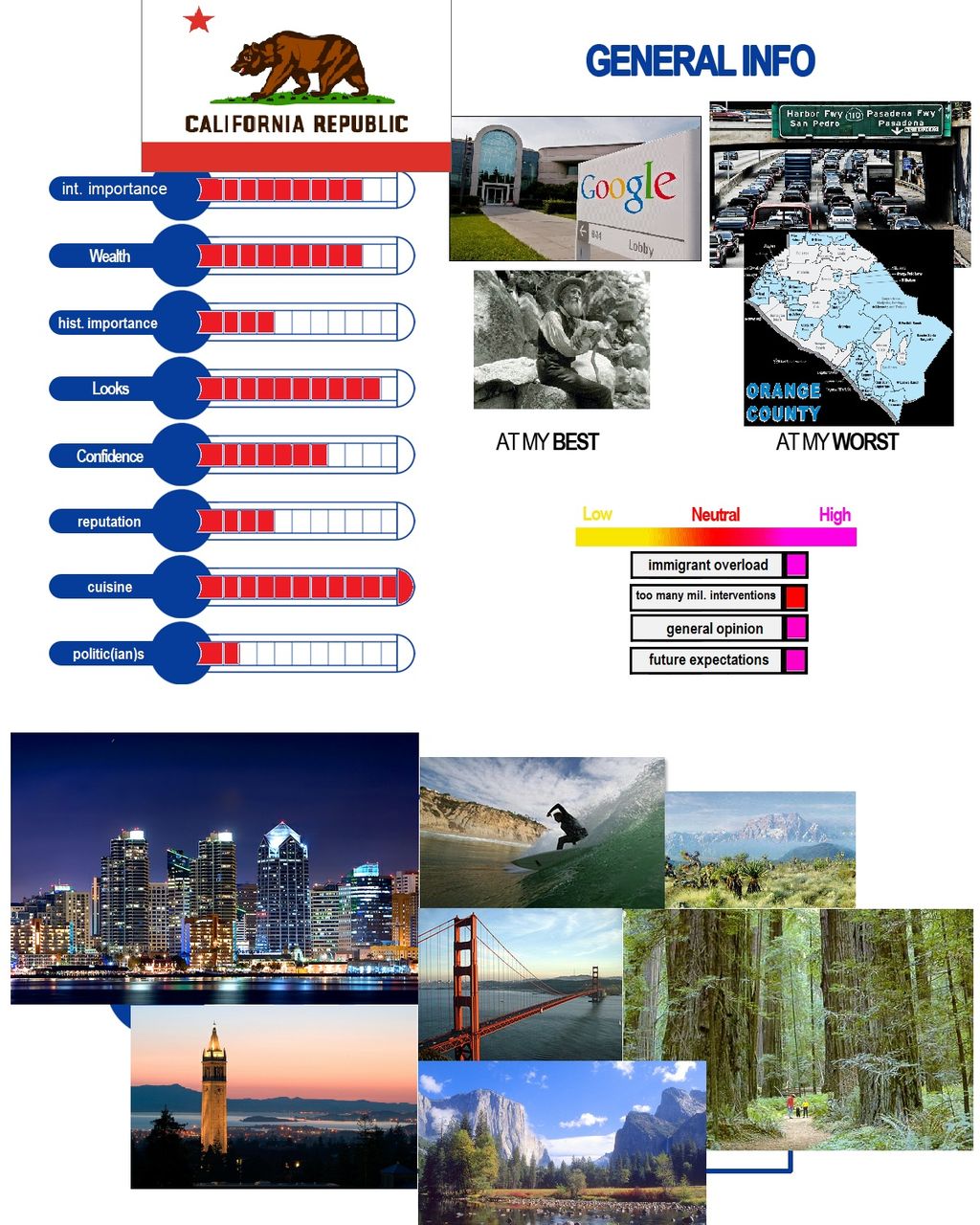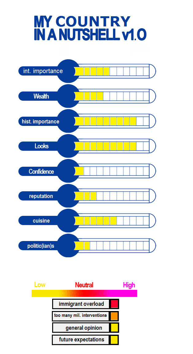 左上:上から「国際重要度、豊かさ、歴史重要度、見た目、信頼、評判、料理、政治」