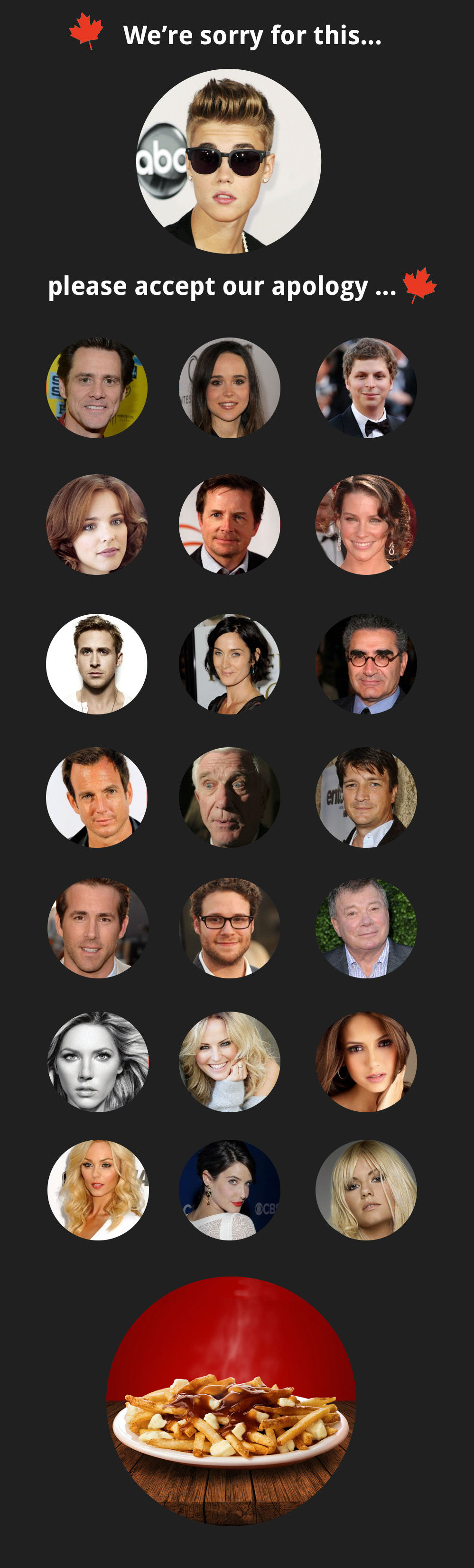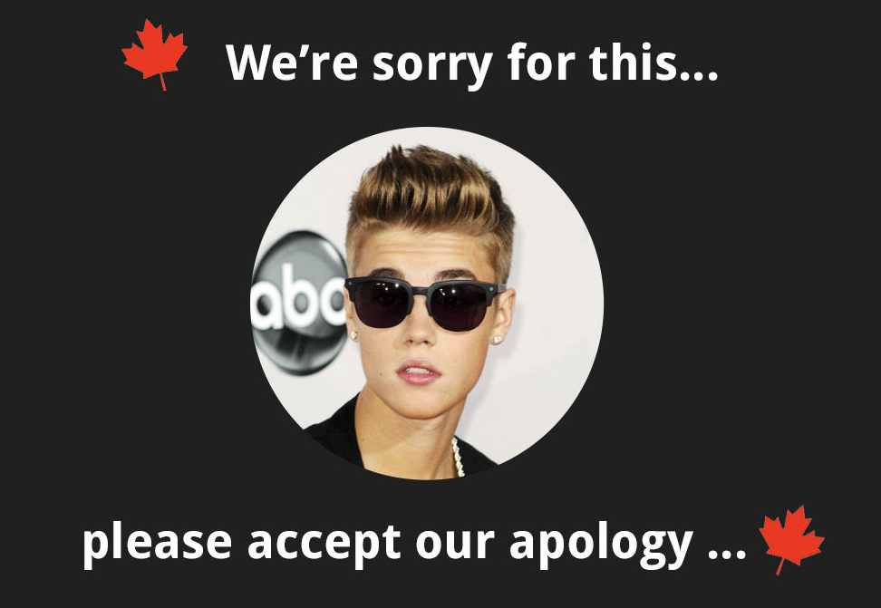 「ジャスティンビーバーのことは我々カナダ人は申し訳なく思ってる・・・ぜひこの我々の誠意を受け取ってほしい」