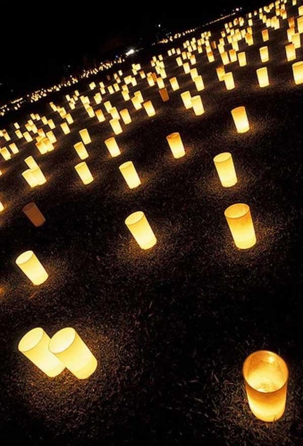日本のハロウィンは先祖をしのぶ「お盆祭り」として知られています。このお祭りの間は毎晩先祖の魂が自分の家族がどこにいるのか分かるようにするためろうそくに火がともされます。お盆の最後の日には魂がお墓に戻るための導となる火がともされます