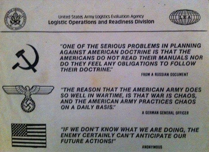 「アメリカ人のドクトリンに対抗する計画を立てる上で一番の障害になるのはアメリカ人はマニュアルを読まず自国のドクトリンに従わなくてはならないという気もない事」