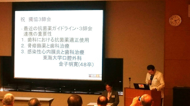 2017年05月29日 獨協3師会 先日、母校の3師会(医師 歯科医師 薬剤師)が東京であり、行って参りました。 講堂で東海大学医学部口腔外科教授 金子明寛先生の講演会がありその後、椿山荘で懇親会がありました。 懐かしい顔ぶれと親交を深めました。