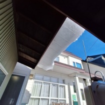おそ松くんのイヤミの出っ歯の様に飛び出してきた雪庇。あ、あ、ヤバいと思ってるうちに、目の前で・・・、あ~あ!!お客さんは全く使わないところだからよかったが・・・。ヤバかったっす。物置小屋の上の雪は消滅しました。予防のため、車庫の雪も落としました。しっかし、下が ...