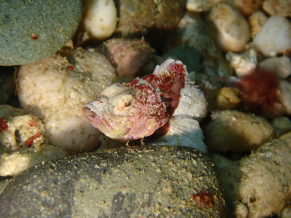 ハナミノカサゴのygやヒレボシミノカサゴも水底でじっとしています