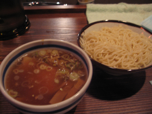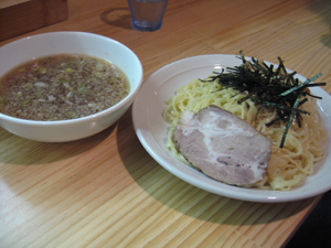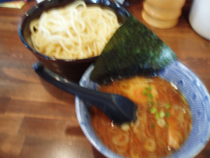 味見させてもらったつけ麺は、麺がちぢれのある平打ちのものになり、味はこちらも好みから外れちゃう感じのもの