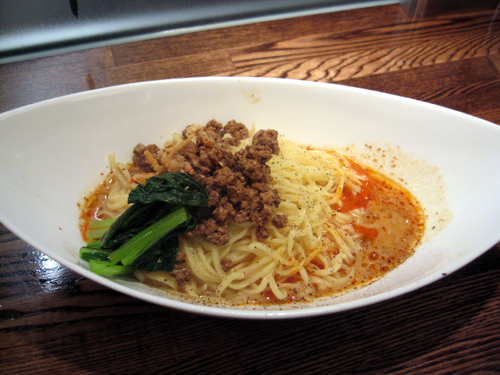 味見させてもらった担担麺は、胡麻風味以外にも出汁の効いたスープで、何となくラーメンと他のお店の担担麺のスープを足して2で割ったような感じのもの。やはり辛味はさほどじゃないです。