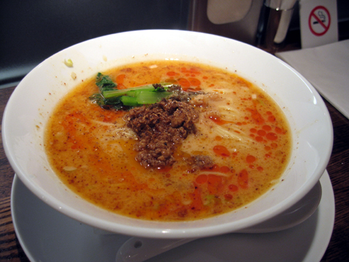 目の前が調理場だったので繁々と調理過程を見ながら同行者と話をしていましたが、スープと胡麻ダレを鍋に入れて温め直し、最後にラー油などで辛味をつけていました。