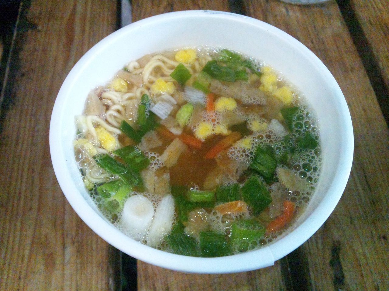 具などは、厚めのチャーシュー、甘めのメンマ、糸唐辛子、薬味ネギで、チャーシューは変色&臭みがあるのが残念・・・。