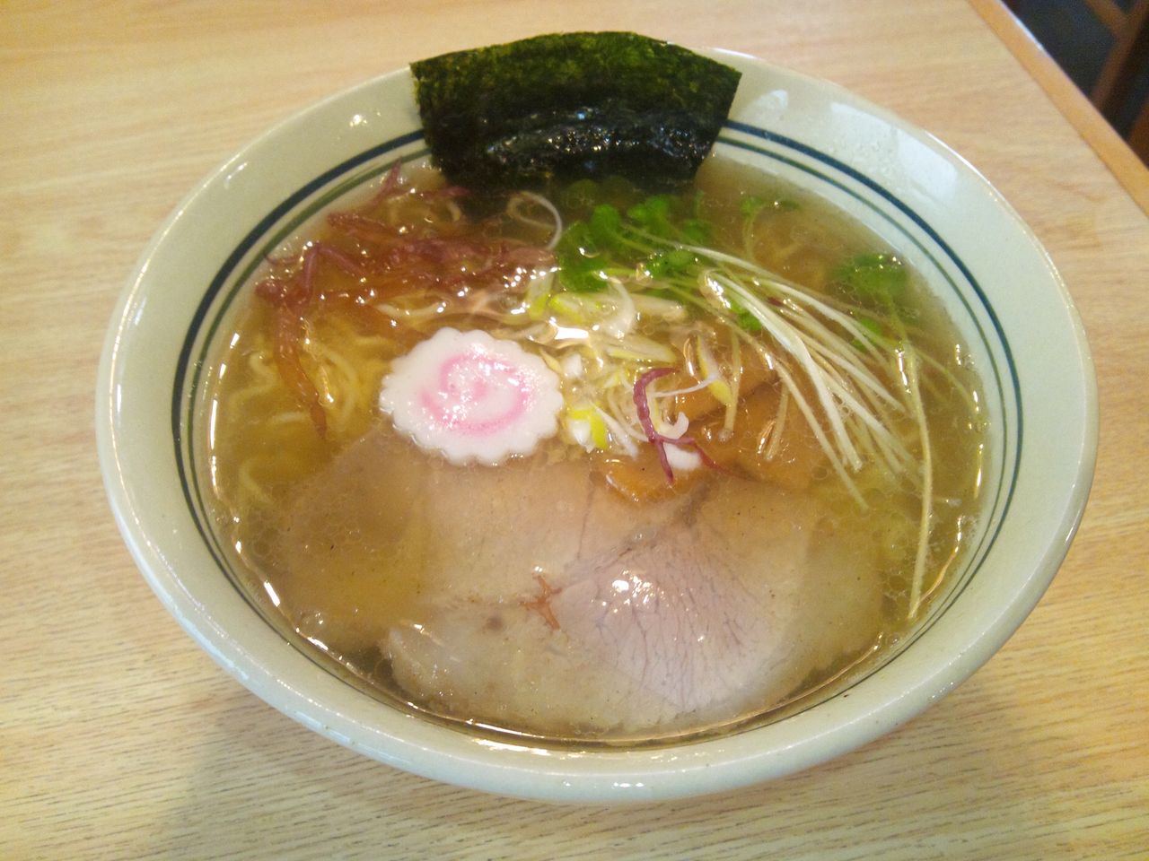V字型の変則的なカウンター席のみの店内に入ると、少し奥まった場所に券売機があり、 同行者とラーメン(600円)をチョイスいたします。