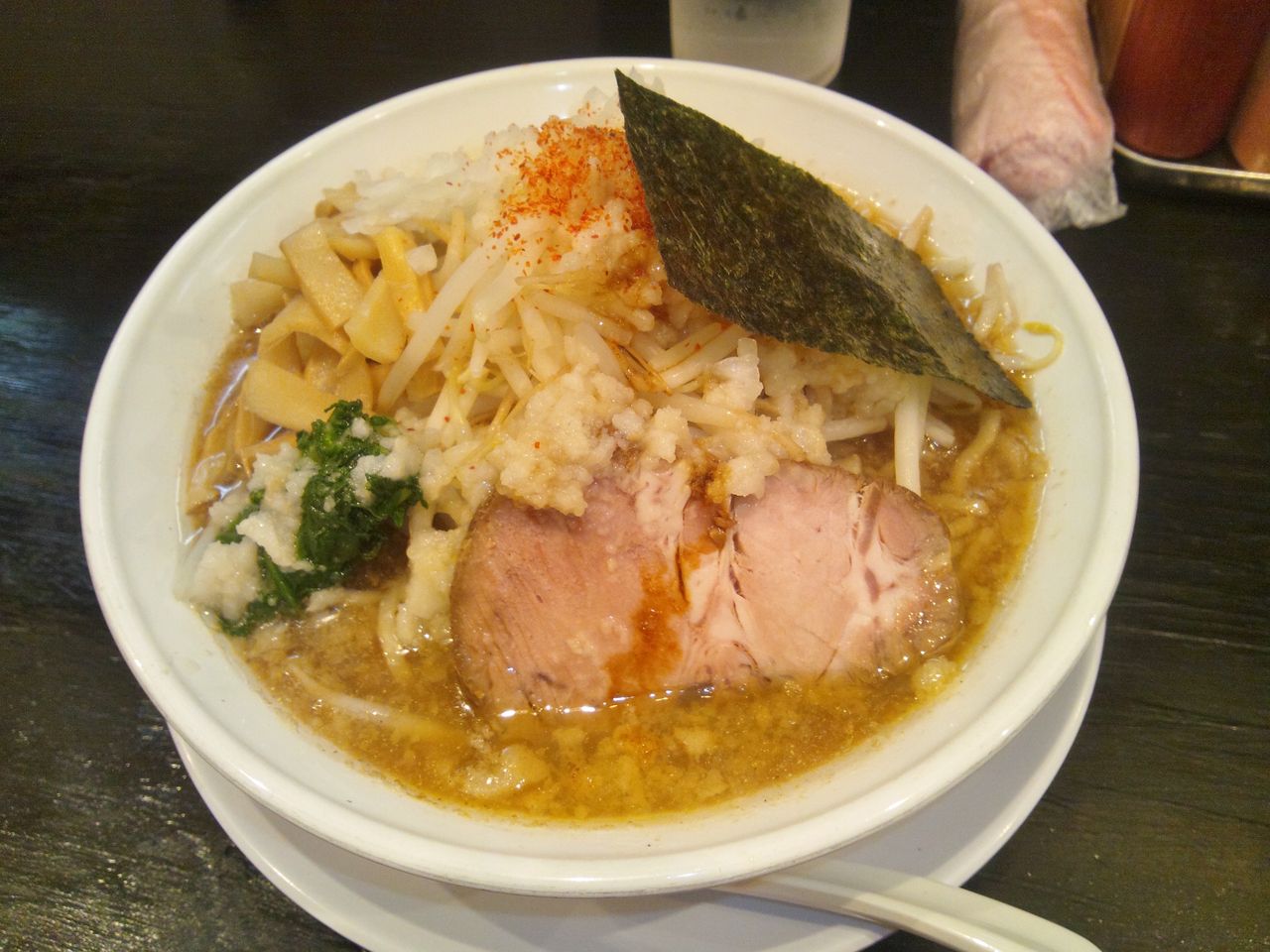 食券を渡すと、味の濃さ、麺の硬さ、油の量を聞かれ、前々から一度やってみたかった麺柔めでお願いしてみます。