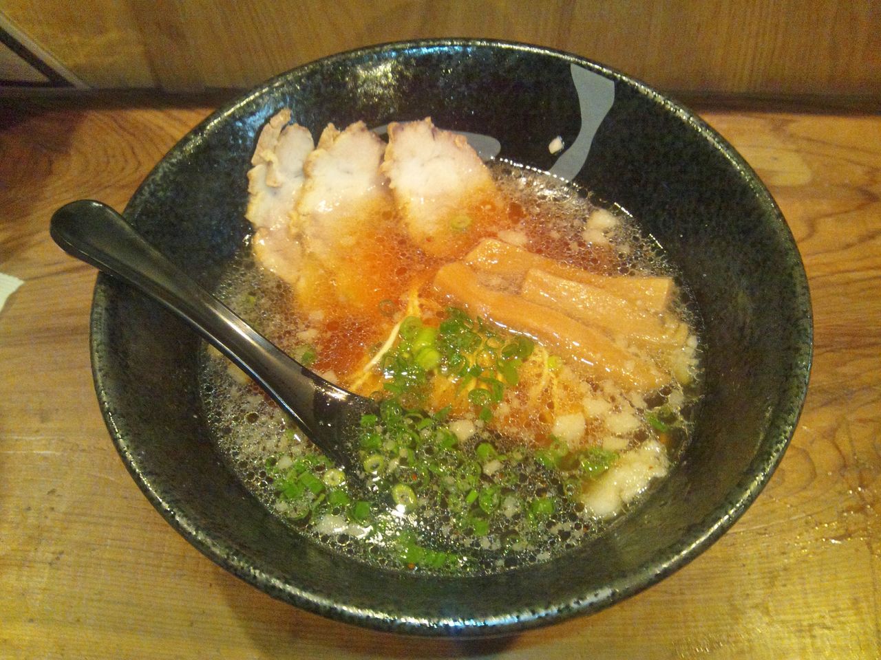 具などは、チャーシュー、ほうれん草、海苔3枚、薬味ネギで、チャーシューは直系らしくスモーキーな感じのもので、ほうれん草の他の家系と比べると美味しい!