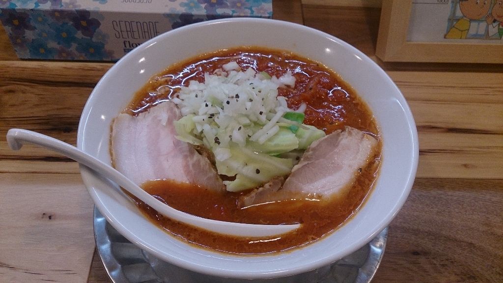 何か嫌な予感がしましたが、赤担々麺、黒担々麺、麻婆麺、カレー麺、ラーメン、ミソニラ辛みとろ麺とメニューがある中、お目当てのカレーラーメン(800円)をオーダいたします。
