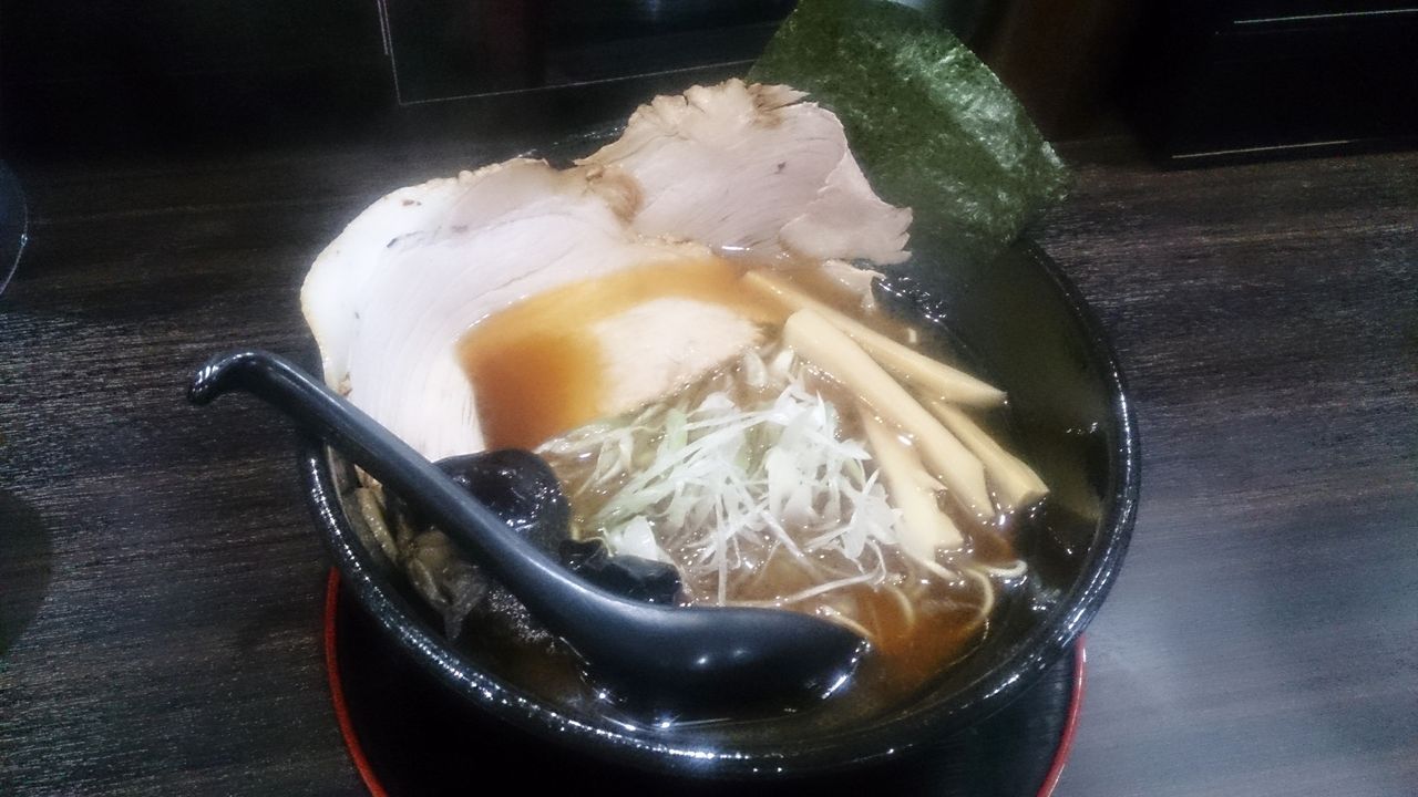 出て来た龍の雫は、豚骨&魚介&北海道産野菜を14時間以上炊いたとされるスープに、フライパンでチンチンに火にかけた魚介の香味油をジュワッと追加したもので、かなり熱々の香ばしい醤油スープが楽しめます♪