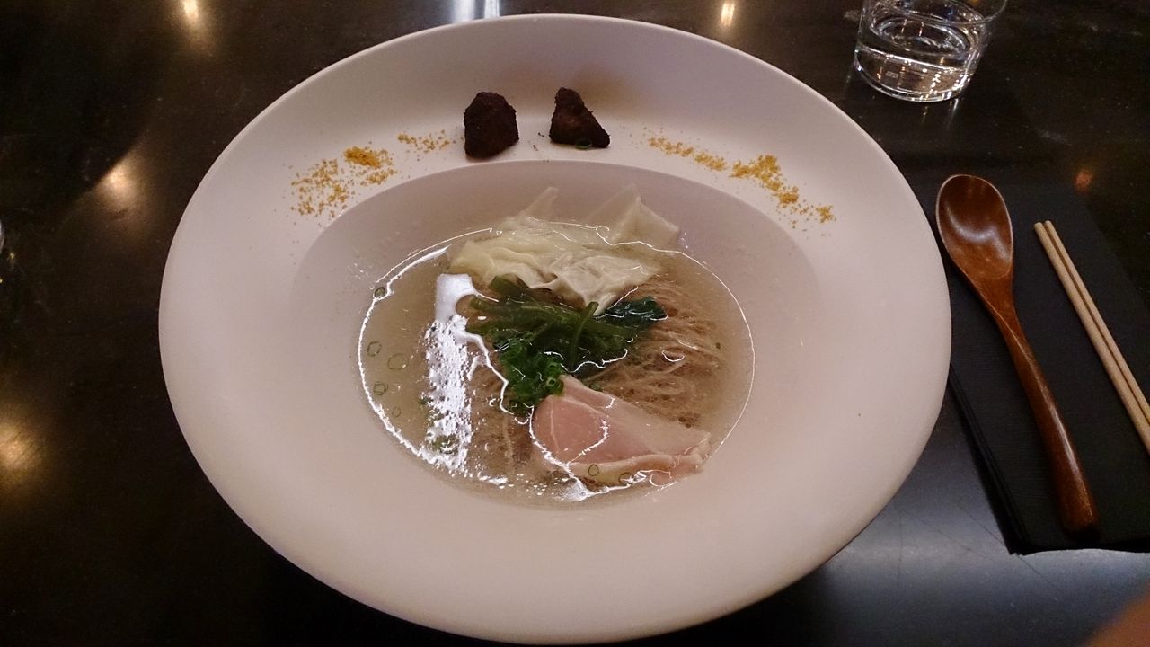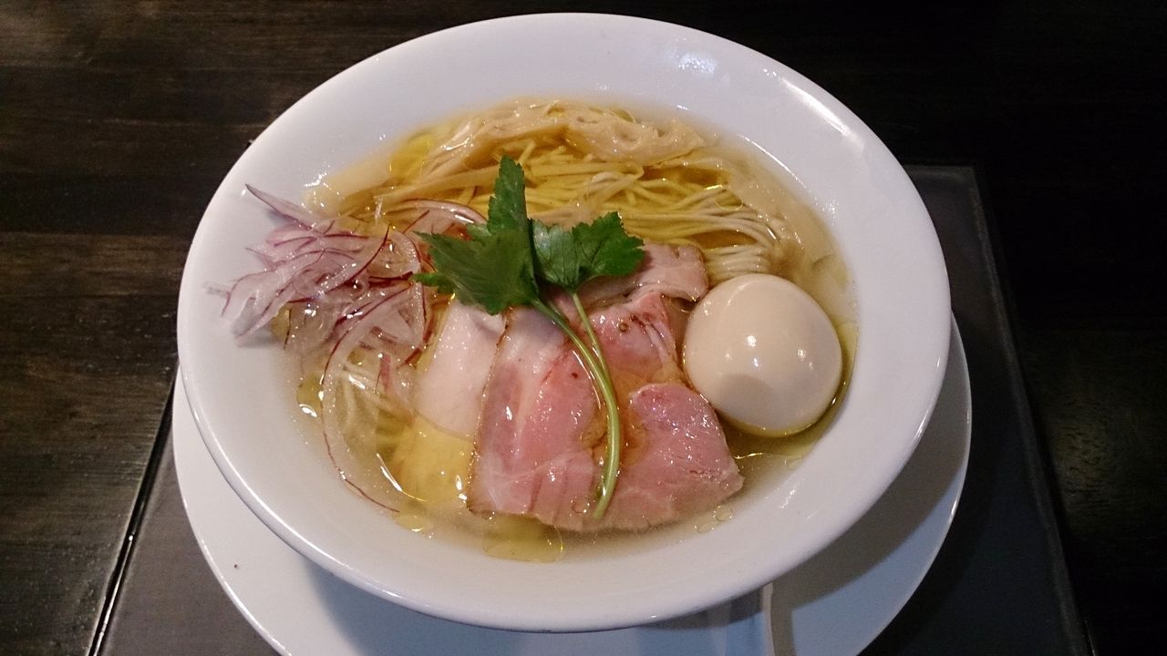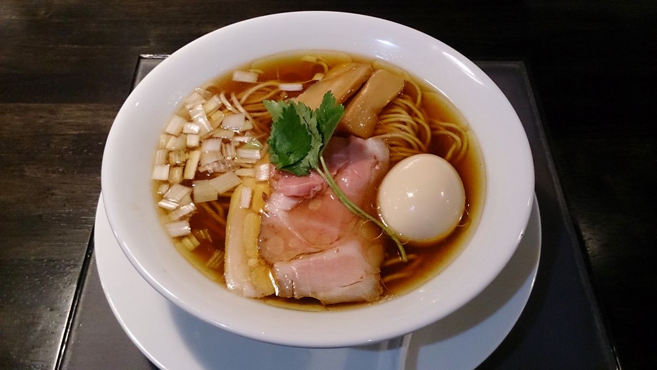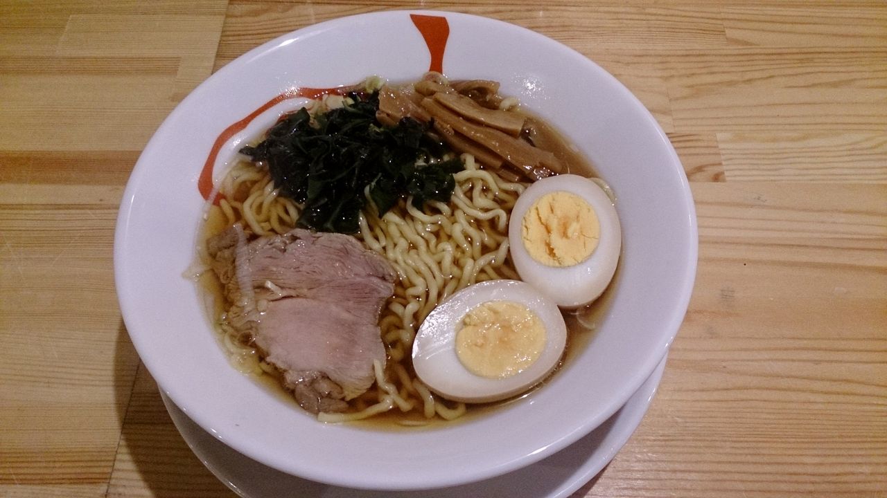 出て来たワンタンメンは、想像してたよりもライトな感じの醤油スープで、生姜風味が動物の旨味を引き立てる感じのものです。