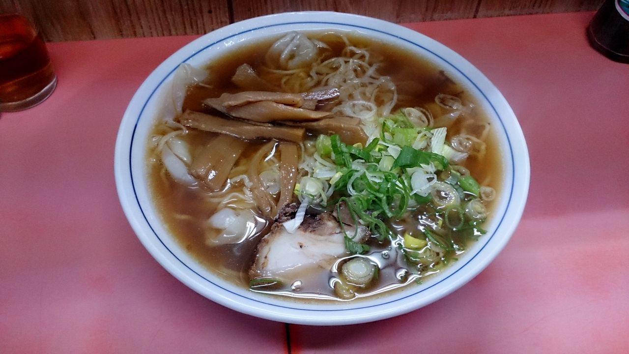 具などは、ブロック状のチャーシュー、メンマ、ワンタン、薬味ネギで、味付けは濃いチャーシューは、上顎と舌で崩せる感じの柔らかさ、そして生姜風味のあるワンタンは麺と一緒に絡んで口の中に入って来ますよ♪