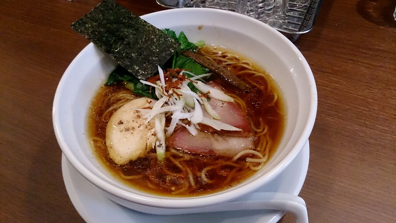 営業開始と共に店内に入り券売機のメニューを見ると、醤油らーめん、薄口醤油らーめん、塩らーめん、鶏コクらーめんとあり、根津店で気になっていた薄口醤油らーめん(750円)をチョイスします。