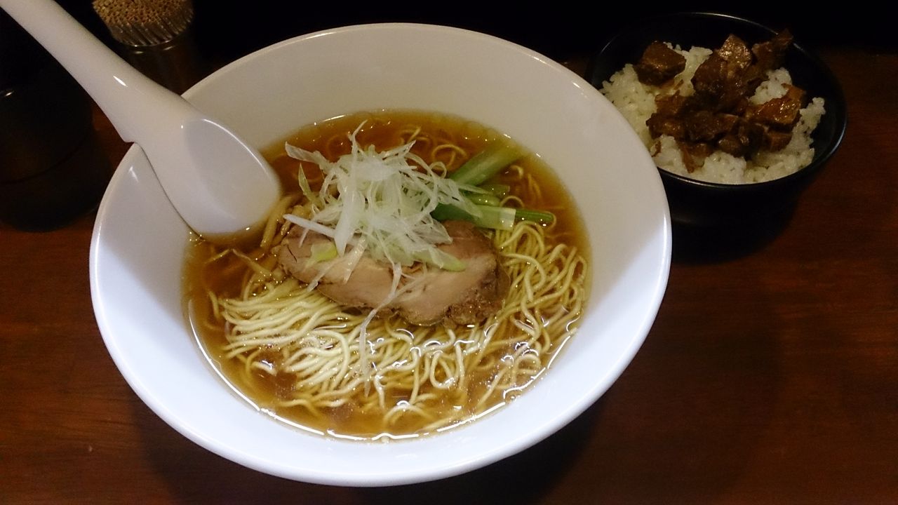 出て来たうす口醤油らーめんは、煮干の風味を抑え、鶏の旨味とコクを楽しめるように仕上げたスープとされ、醤油らーめんを比べると鶏を感じやすいですが、肉佃煮ご飯と一緒に楽しんで丁度良く感じたので、オレッチには単体だと味も淡く感じたかな?