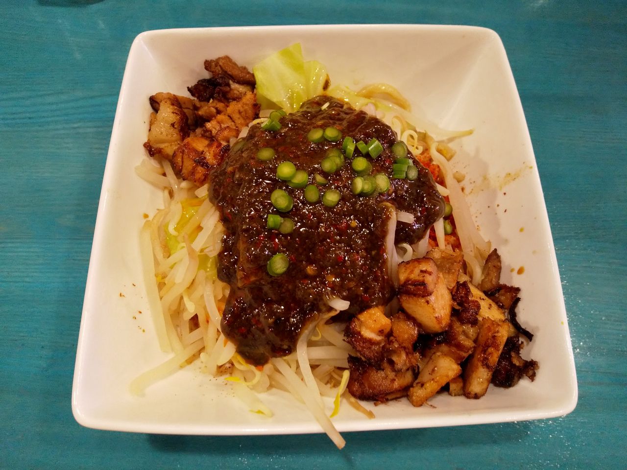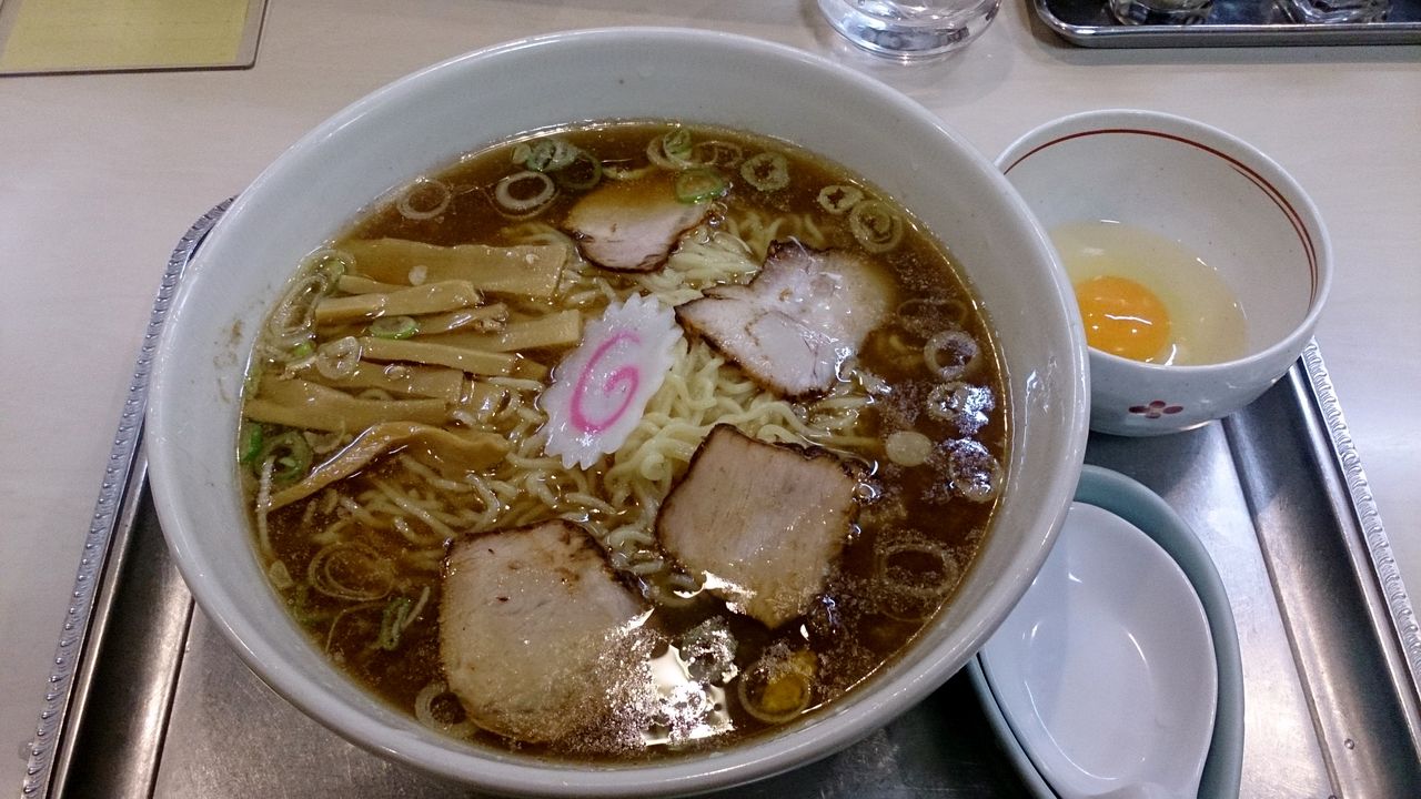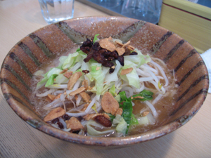 具などは、チャーシュー数枚、茹でモヤシ&キャベツ、揚げ玉ネギ、青ネギで、濃い目の味付けのチャーシューも懐かしい♪