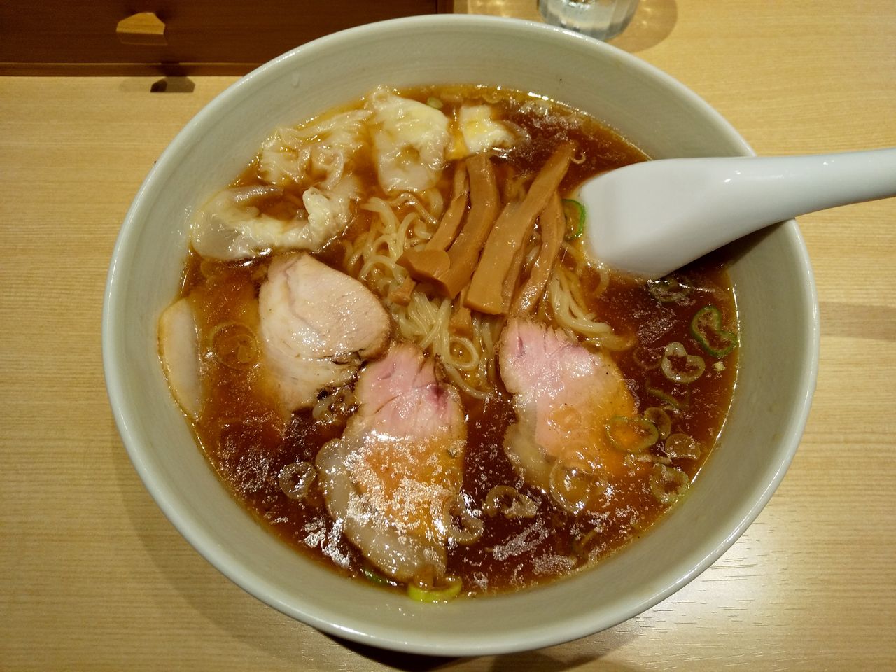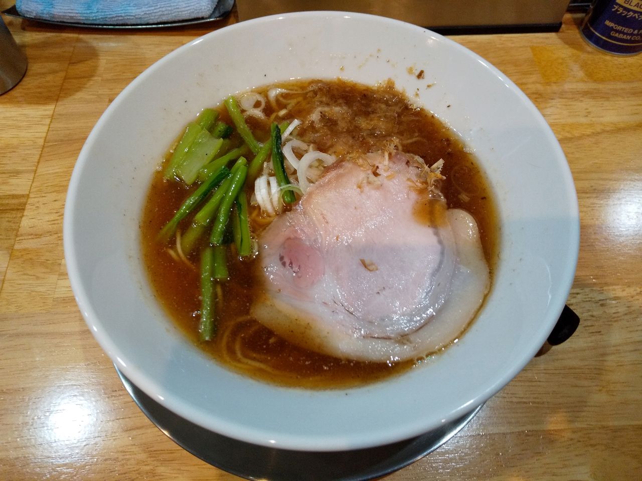 出て来たザボンラーメン醤油は、豚骨&鶏ガラ&魚介からの濁りのあるスープで、表面の背脂も懐かしい♪