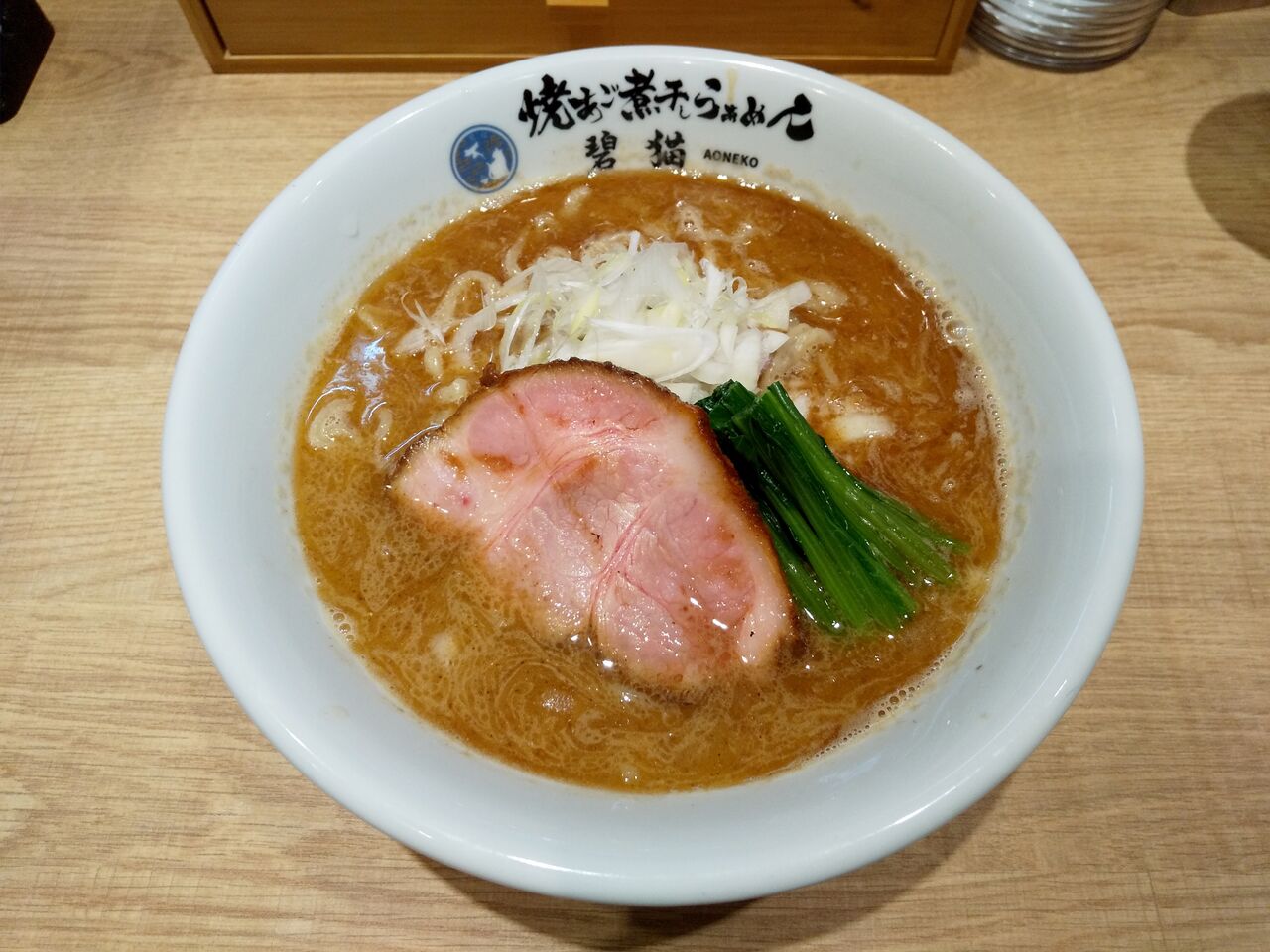 焼あご煮干しの魚介風味、鶏や豚の旨味が楽しめるスープで、気持ちビターさも感じられるスープです。