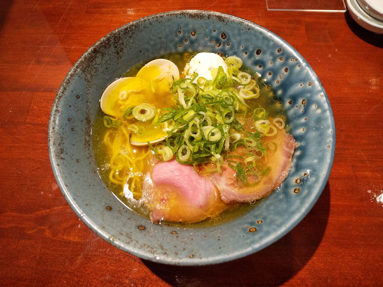 順番になってカウンター席のみの店内に入り券売機のメニューを見ると、焼あご煮干し塩らぁめん、濃厚焼あご煮干しらぁめんとあり、焼あご煮干し塩らぁめん(780円)をチョイスしてみます。