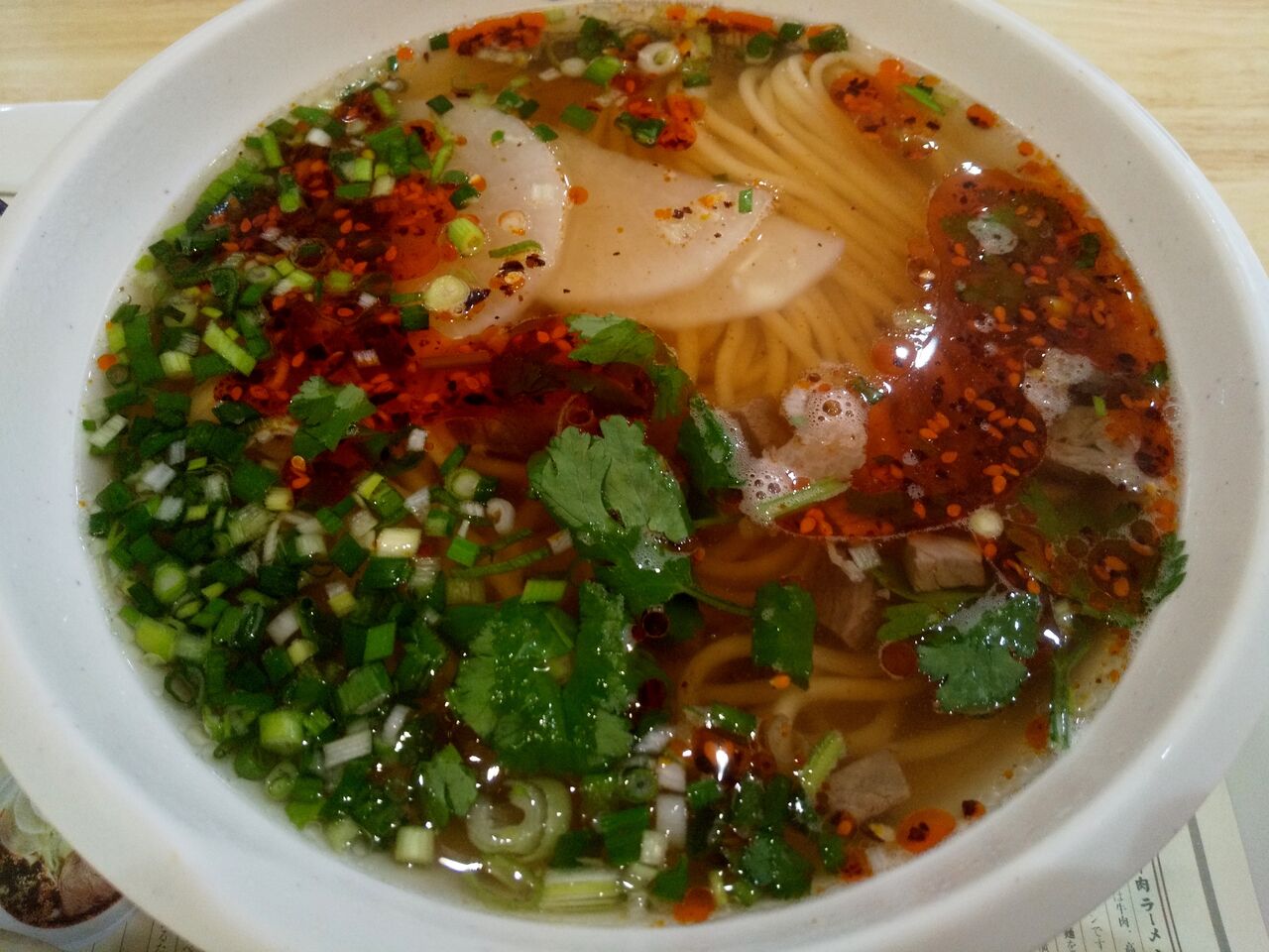 具などは、刻み牛肉、大根、パクチー、青ネギで、パクチーはオーダ時に有無を聞かれますよ。