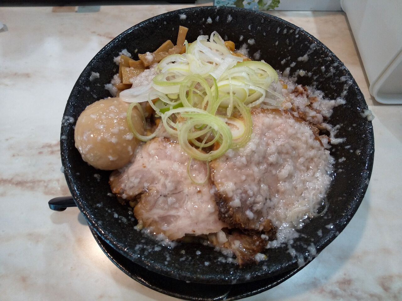 後から気がついたのですが食券提示時に背脂の量の好みが少なめ、普通、多めから選べるみたい。