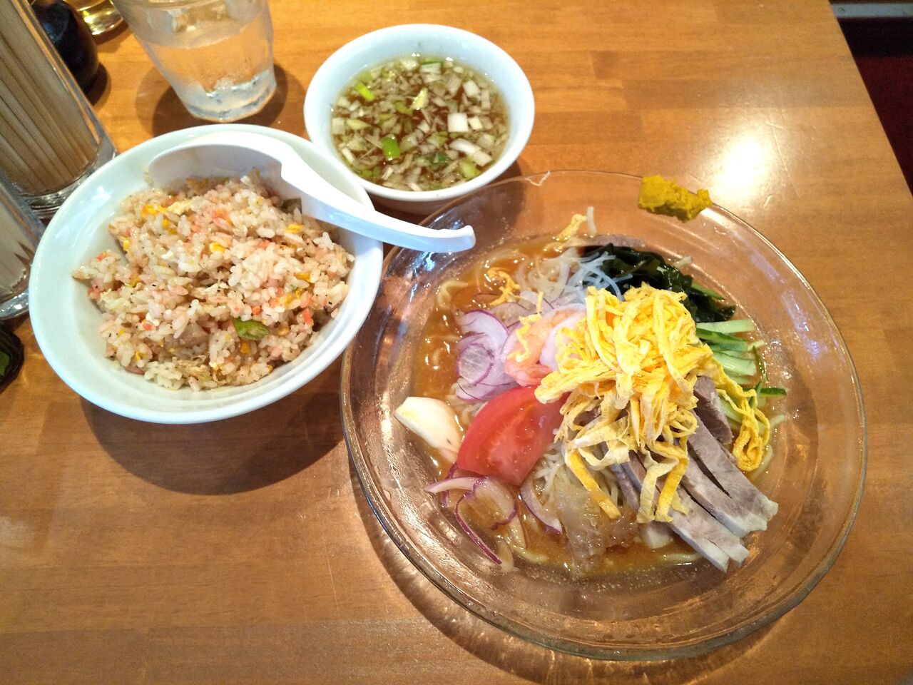 具などはチャーシュー、メンマ、海苔、ミョウガ、大葉、笹切りネギです。
