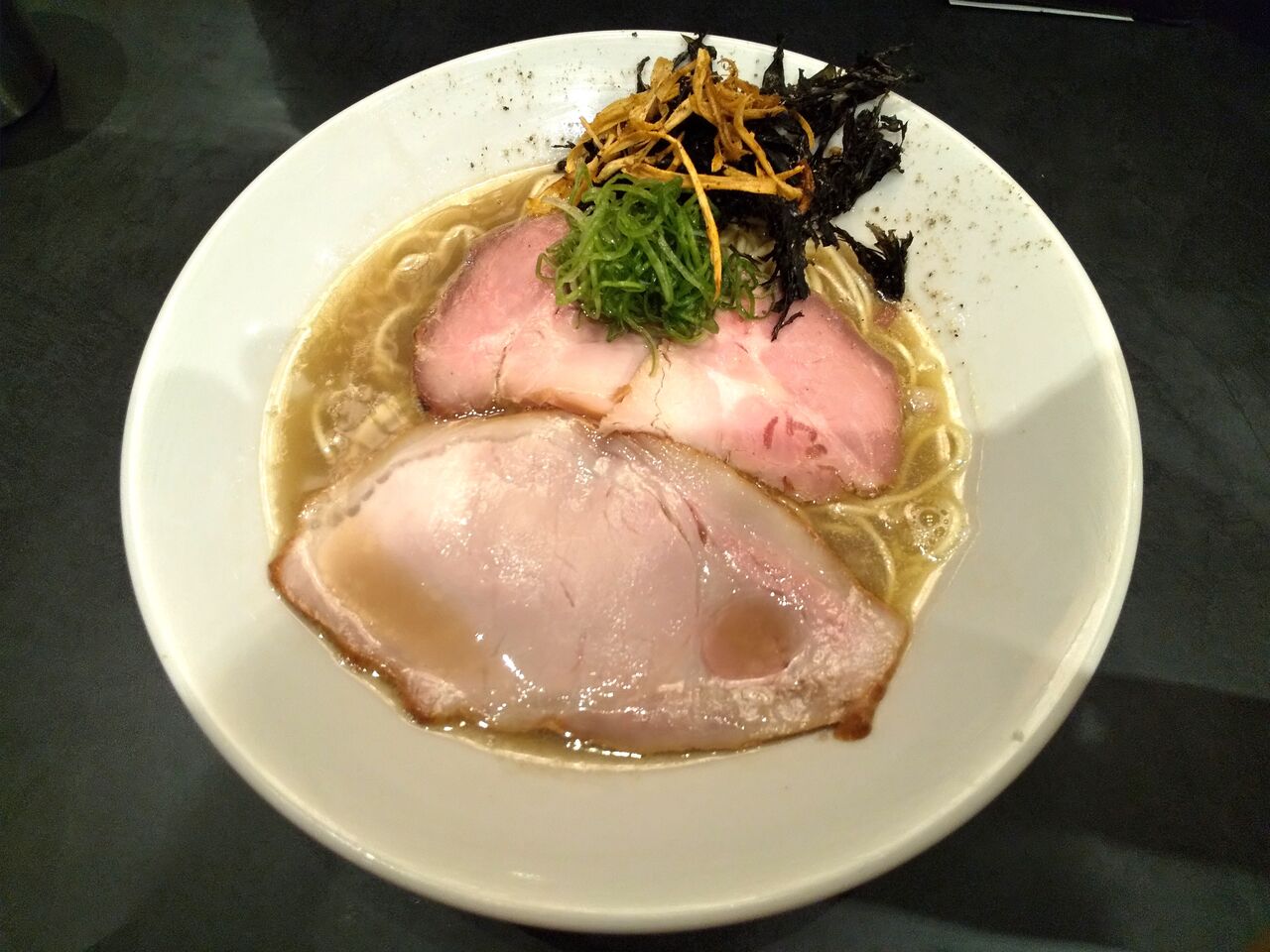 具などはスライサーでカットされたチャーシュー数枚、コリなメンマ、多めな薬味ネギです。