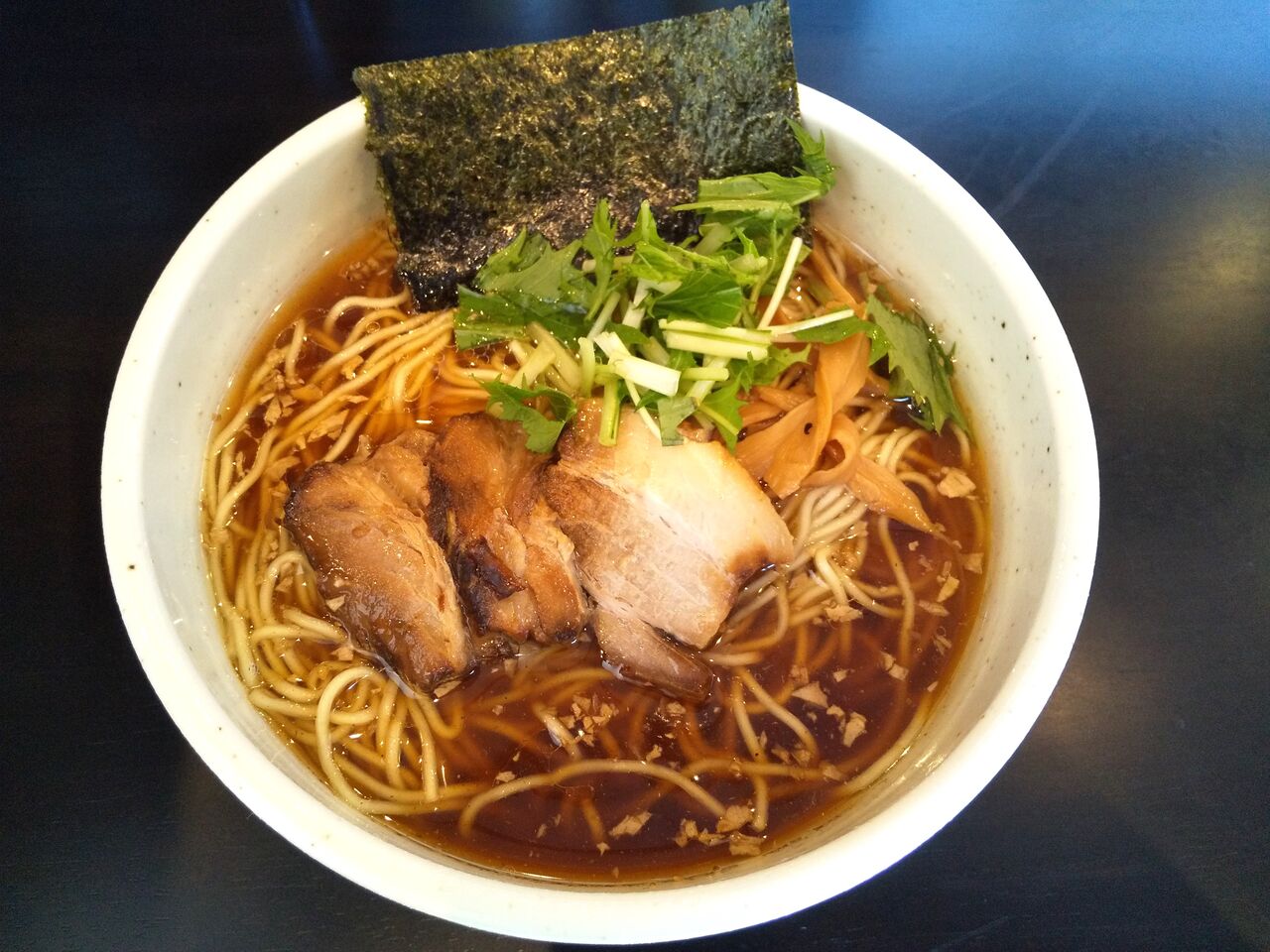 出て来た中華そばは透明度も感じられる醤油スープとなっており見た目にも前のものと違いますね。